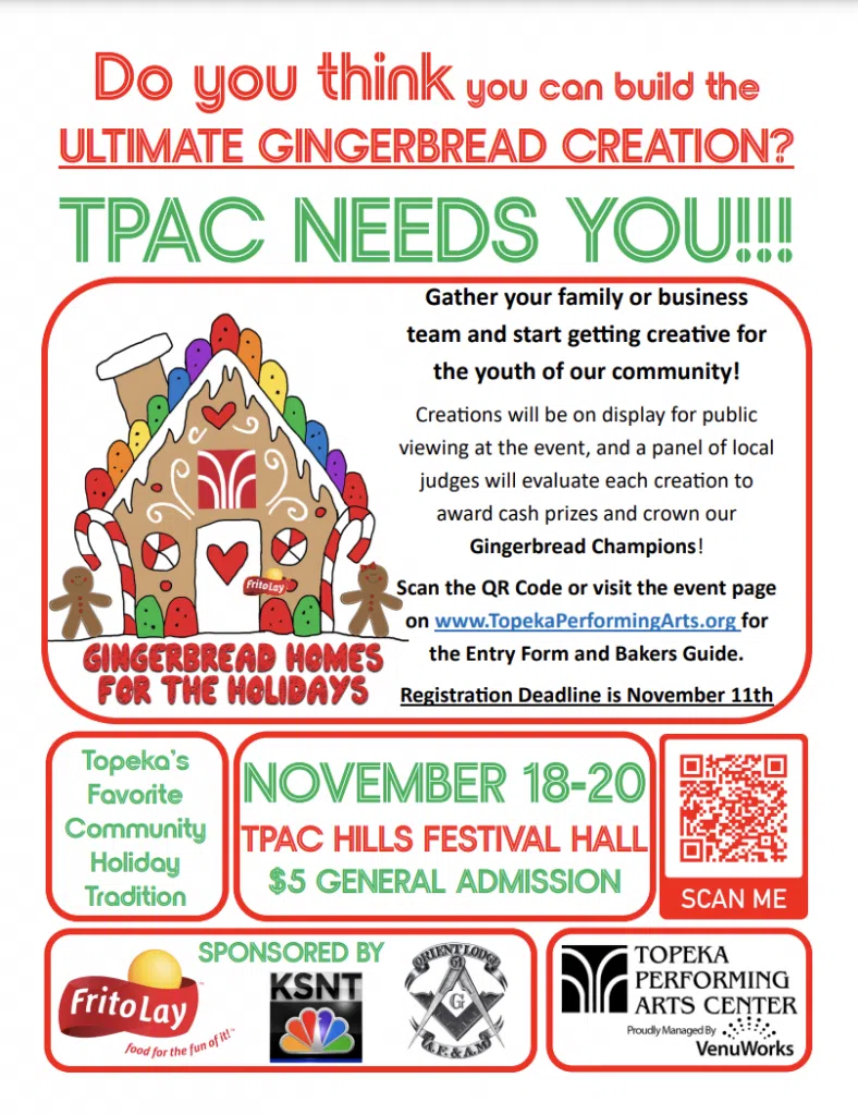 Visit the event page on www.TopekaPerformingArts.org for the Entry Form and Bakers Guide.
